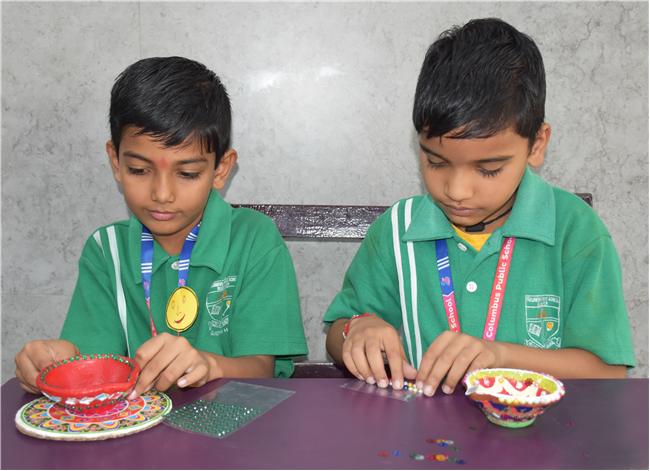 In order to bring out the creative talents of learners and celebrate the Festival of Lights in its true spirit, A Diya decoration competition was organised at CPS for the young Columbians of classes 1 and 2 on 19th Oct 2022.