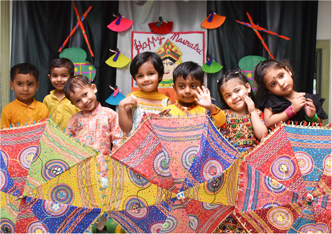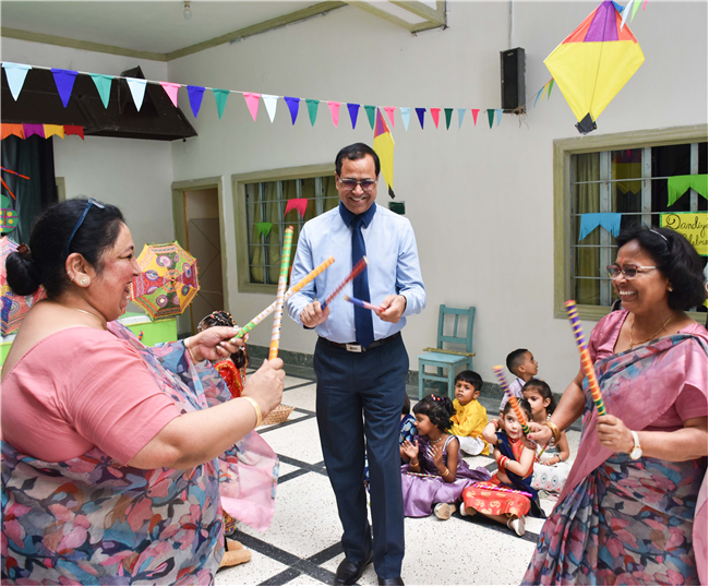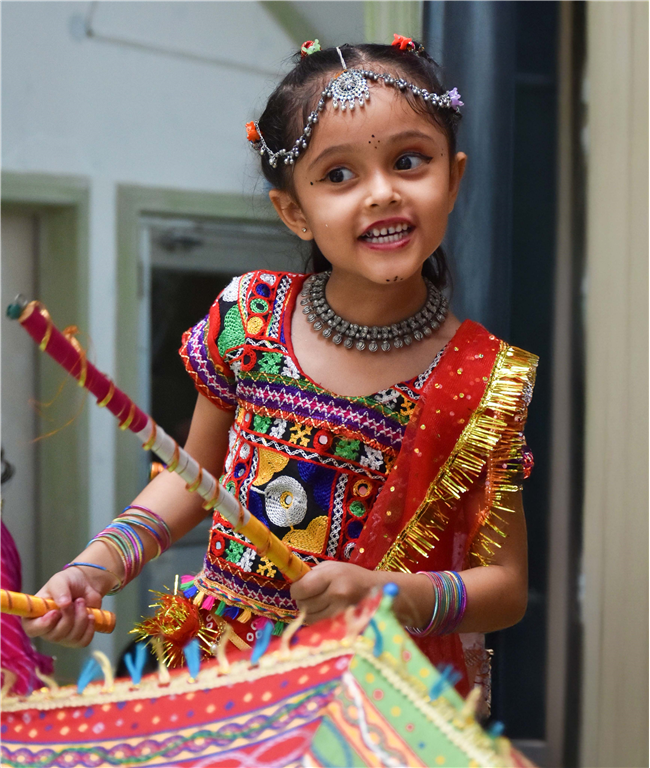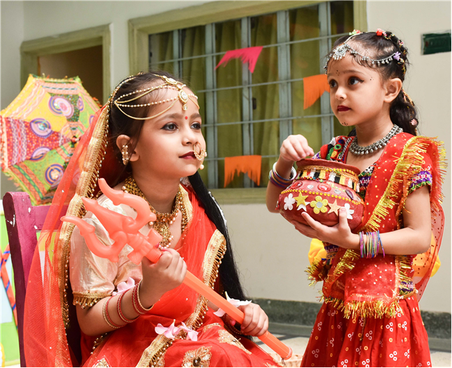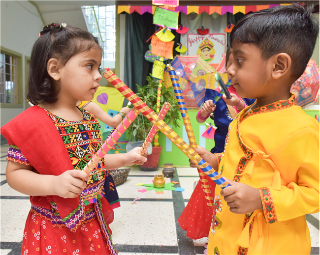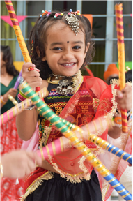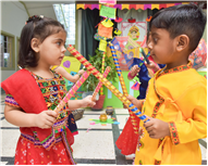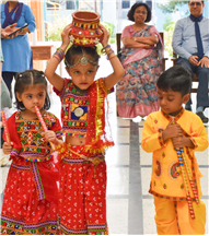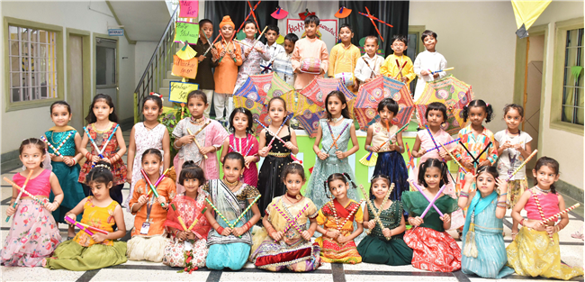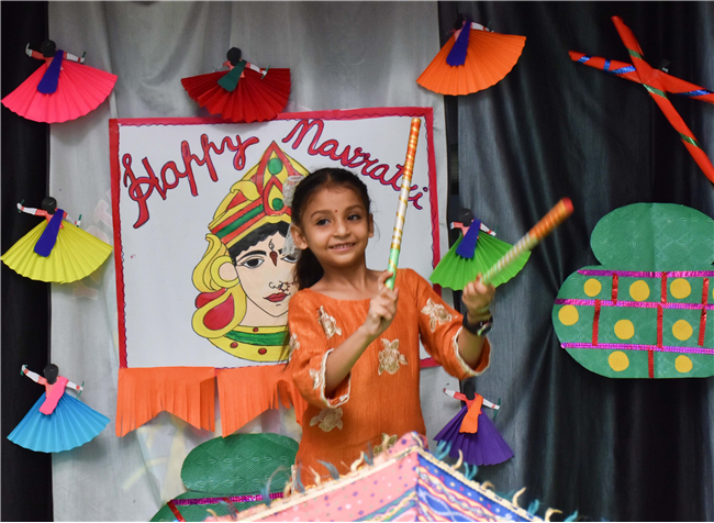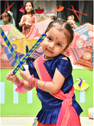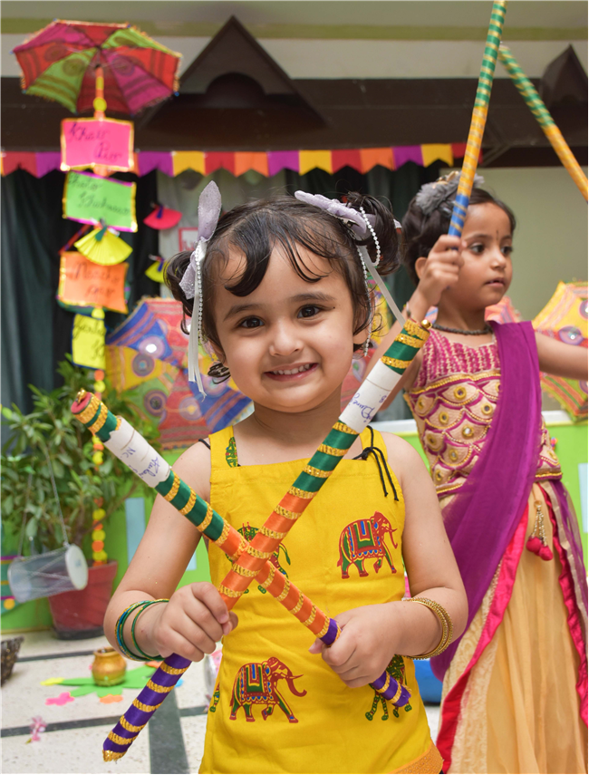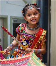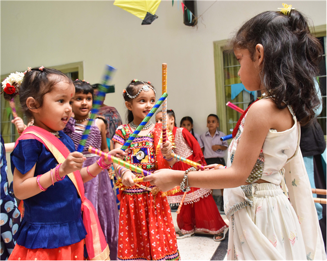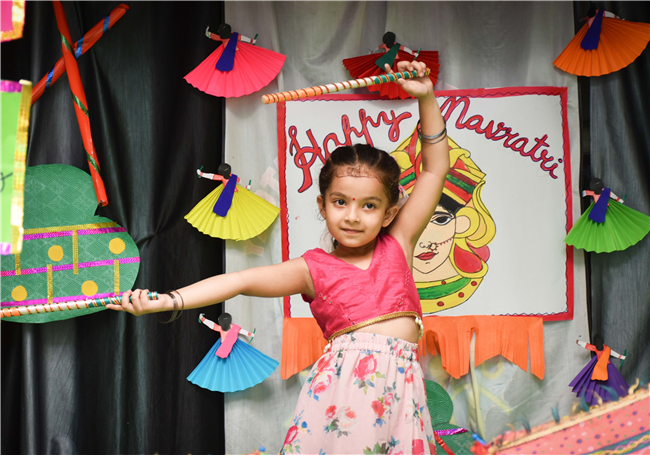 Navratri was a vibrant showcase of culture and community, as our young stars of our Pre-Primary Wing donned colourful traditional attire that embodied the spirit of the festivities. The atmosphere was alive with enthusiasm, music, and laughter, creating a dynamic environment where children danced joyfully in circles. The smiles on their faces reflected a genuine happiness, underscoring the importance embracing cultural heritage.