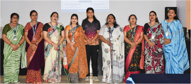 The workshop commenced with the auspicious lamp lighting ceremony, which set a reverent tone for the day. Following this, the audience was treated to a melodious welcome song, presented by a choir of teachers itself.
