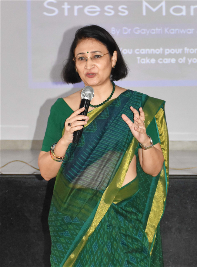 Dr. Kanwar and Mrs. Bhatt captivated the attendees with their comprehensive insights into the myriad types of stress that individuals may encounter in their lives. They elaborated on the profound impact of stress on mental and physical well-being and introduced practical techniques designed to alleviate its burden.