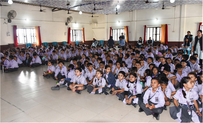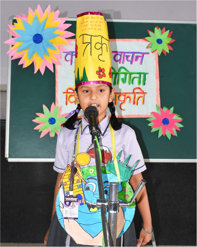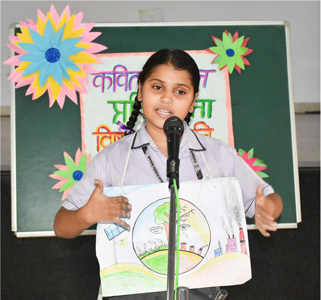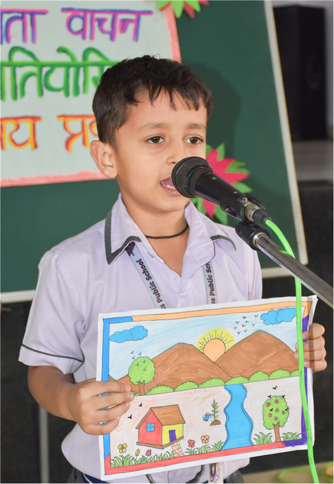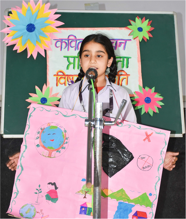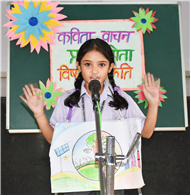 The students recited poems on the theme of 𝗡𝗮𝘁𝘂𝗿𝗲 (प्रकृति) with great enthusiasm and energy. They delivered their verses with beautiful expressions, insightful thoughts, and a rhythmic flow. The magic of their words and innocent gestures left everyone spellbound.