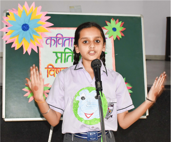 poetry among children, a 𝗛𝗶𝗻𝗱𝗶 𝗣𝗼𝗲𝗺 𝗥𝗲𝗰𝗶𝘁𝗮𝘁𝗶𝗼𝗻 𝗖𝗼𝗺𝗽𝗲𝘁𝗶𝘁𝗶𝗼𝗻 was held at our school for students in classes I to V.
